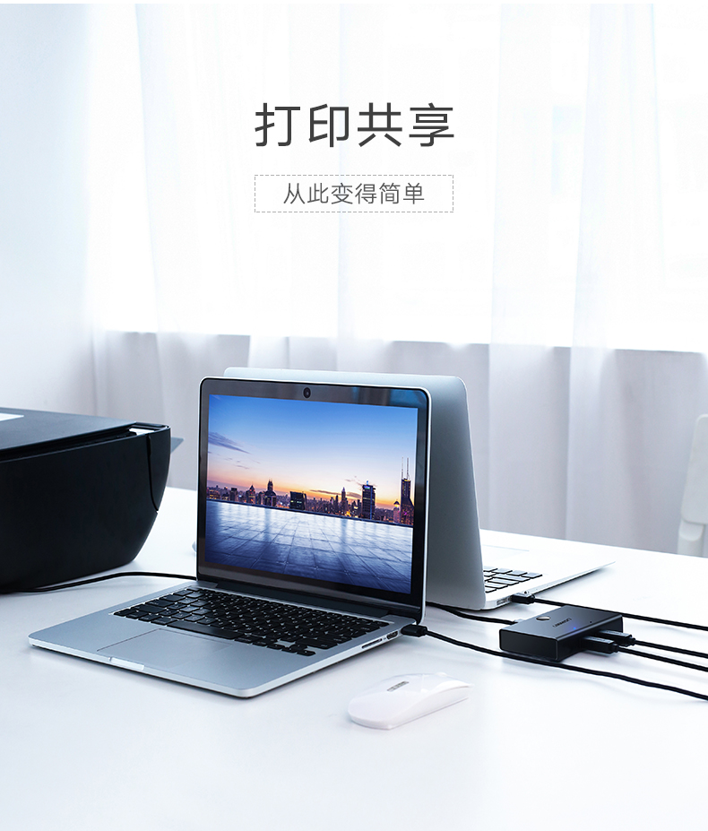 綠聯(lián) USB打印機(jī)共享器 二進(jìn)一出切換器 2進(jìn)1出 臺(tái)式機(jī)筆記本電腦接鼠標(biāo)鍵盤U盤共享2口轉(zhuǎn)換器