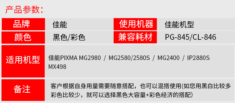 • 商品名稱:佳能(Canon)CL-846 彩色墨盒 適用于MG3080 MG2980 MG2580S MG2580 MG2400 MX498 iP2880S iP2880