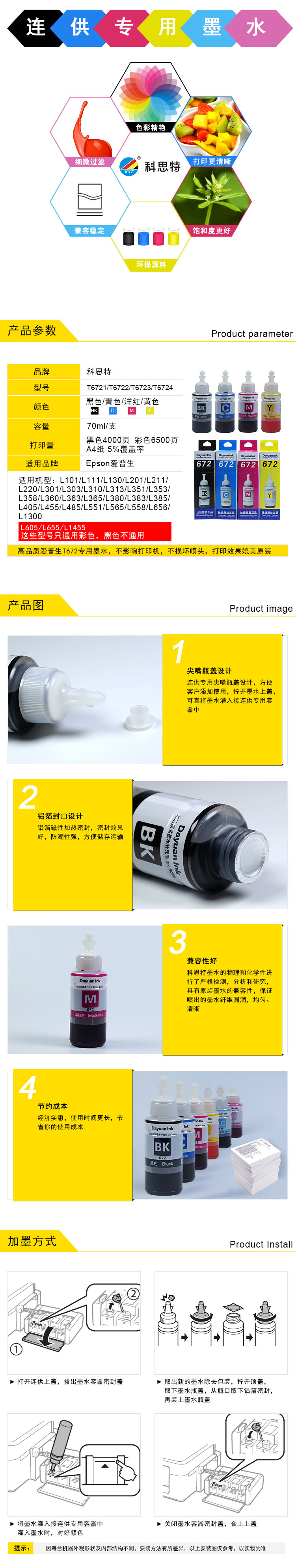 • 商品名稱:科思特(KST)T6724 黃色墨水 適用于愛普生 L211 L301 L310 L351 358 L360 L1300