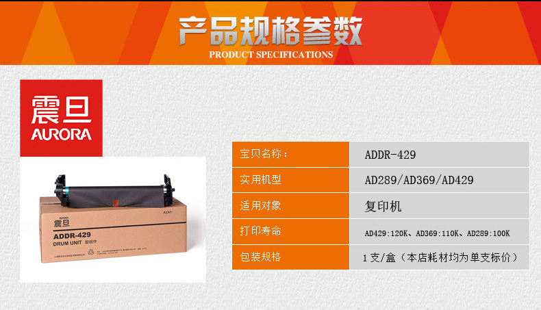 • 商品名稱:震旦ADDR-429硒鼓套鼓 289S鼓架 100000頁 適用AD289/AD369/AD429