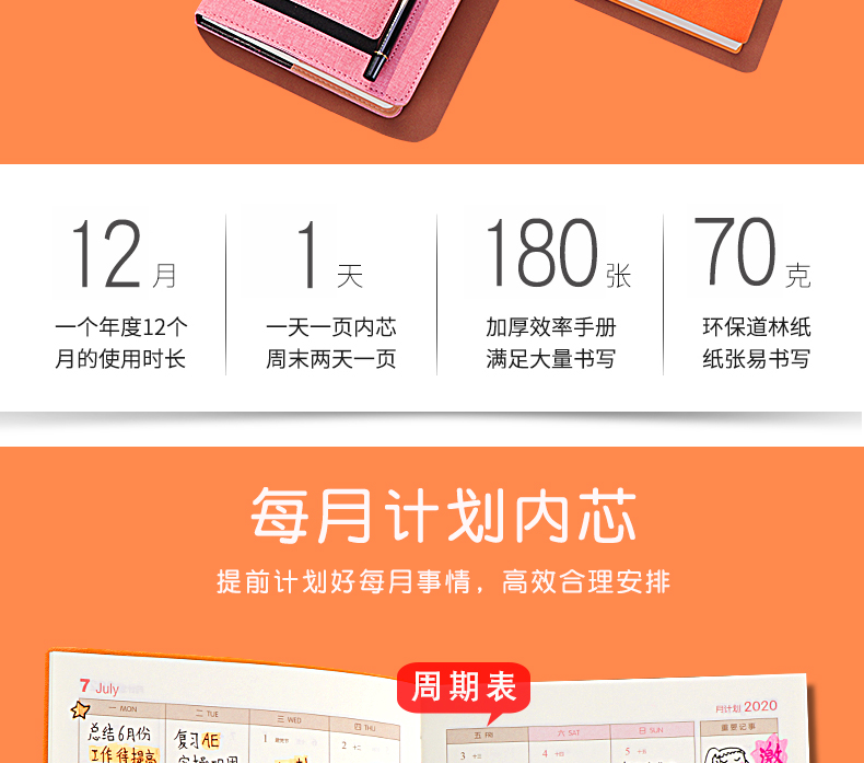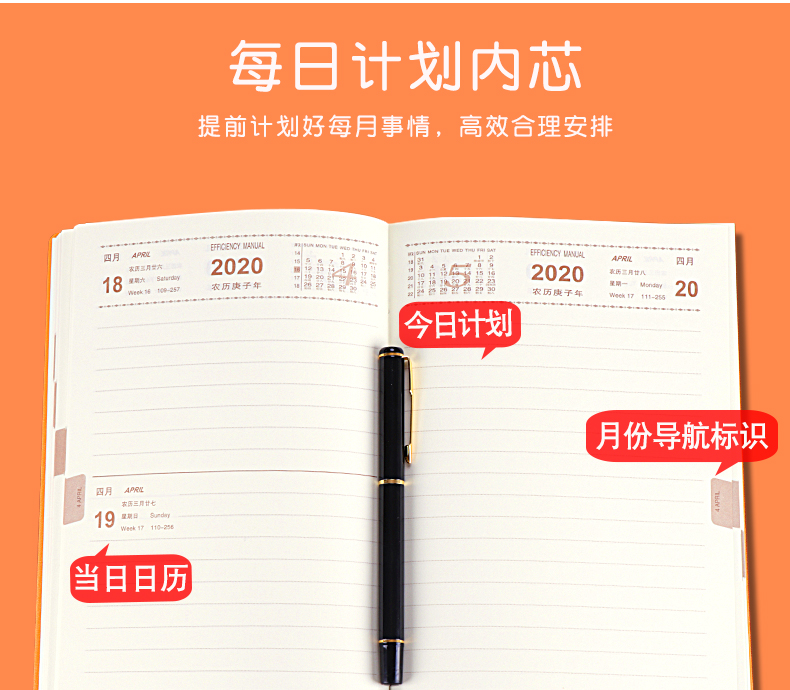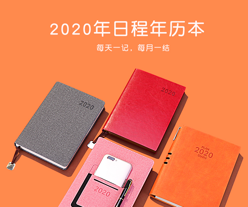 2020年歷本日歷記事本每日月計劃本日程本工作效率手冊小清新學(xué)生創(chuàng)意記錄本定制商務(wù)筆記本文具本子 A5 (KJ)