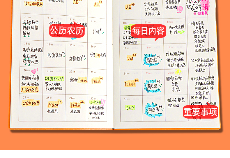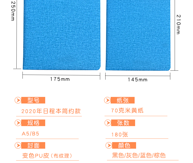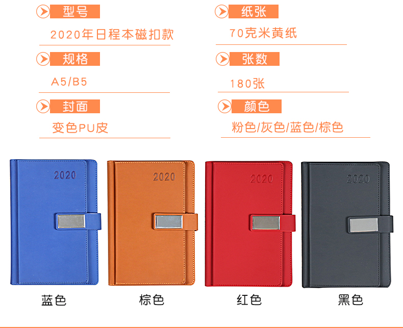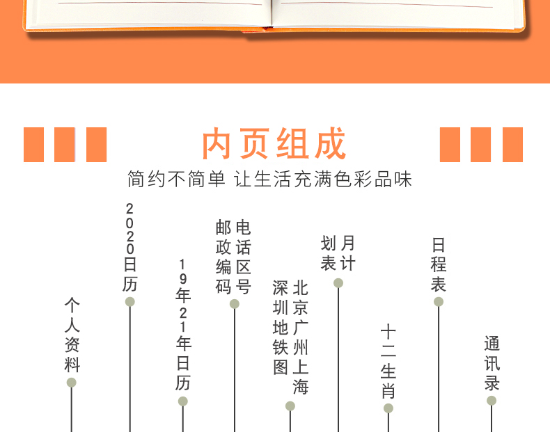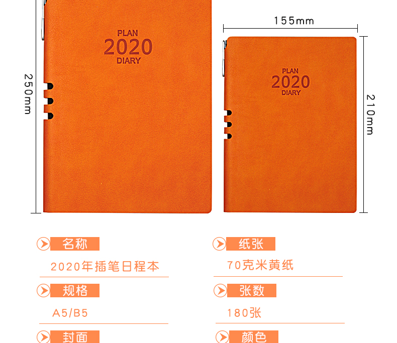 • 商品名稱:2020年歷本日歷記事本每日月計劃本日程本工作效率手冊小清新學(xué)生創(chuàng)意記錄本定制商務(wù)筆記本文具本子 A5 (KJ)