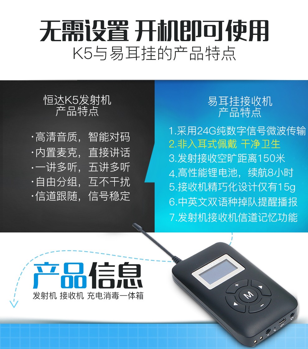 恒達(dá)文博 無(wú)線講解器一對(duì)多 工廠參觀行政接待講解員導(dǎo)游解說(shuō)同聲傳譯機(jī)團(tuán)隊(duì)講解器 K5易耳掛 (2講+100聽(tīng)+2個(gè)充電箱+2個(gè)頭戴式麥克風(fēng)+2個(gè)領(lǐng)夾式麥克風(fēng))(kj)