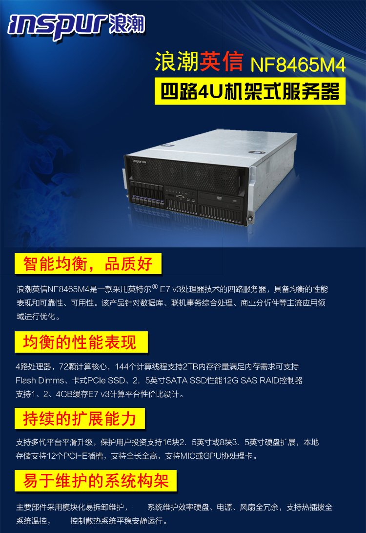 - 商品名稱:浪潮(INSPUR) NF8465M4 XEONE7-4830V3(12c/2.1GHZ)*4|16G RDIMM DDR4 內(nèi)存*8|240G SSD *4 |INSPUR_NF8460M4_2.5 HD*8+背板*1*1|INSPUR 八通道高性能 SAS3008Raid +key*1|主板集成千兆網(wǎng)卡*4|2+1冗余電源*1|U盤軟驅(qū)*1|SLIM DVD刻錄機(jī)*1|標(biāo)配導(dǎo)軌*1