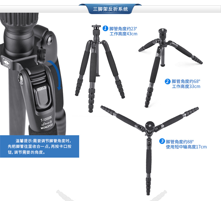 • 商品名稱:思銳(SIRUI)三腳架 T1205SK 碳纖維佳能尼康單反相機(jī)三角架