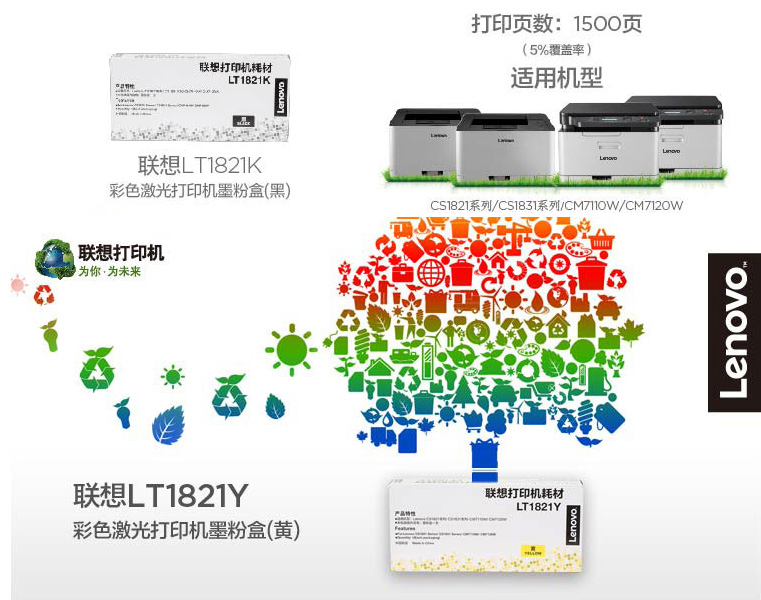 聯(lián)想 LT1821 原裝粉盒 LT1821BK/C/M/Y 四色套裝 適用于(適用于CS1821/1831/CM7120W/7110W)(kj)
