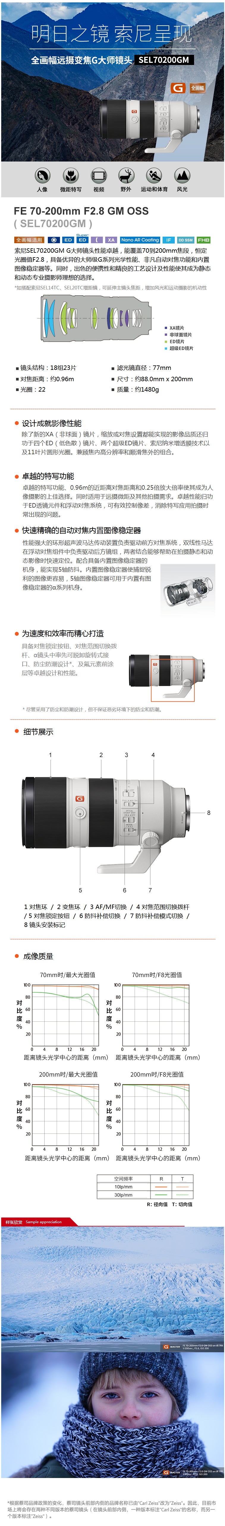 • 商品名稱:索尼(SONY) SEL70200GM FE 70-200mm F2.8 GM OSS 全畫幅遠攝變焦G大師鏡頭 E卡口