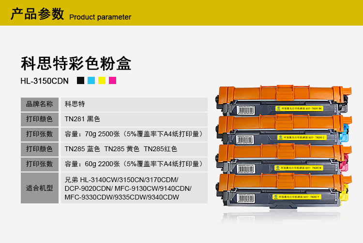科思特TN-285 281粉盒 適用兄弟打印機(jī) HL3150CN DCP9020 MFC9340 TN285C 藍(lán)色