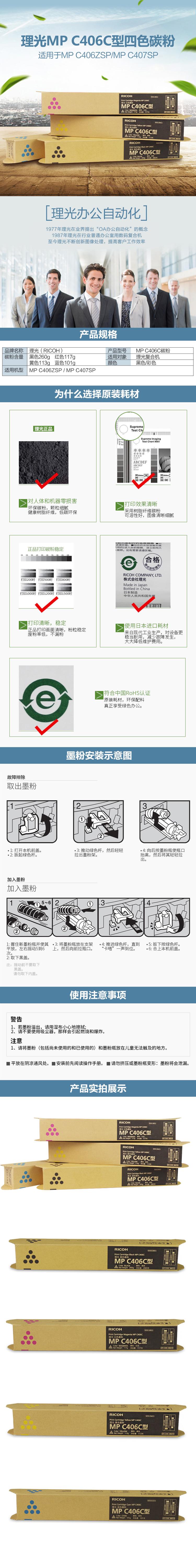 • 商品名稱:理光(Ricoh)黑色碳粉盒MP C406型 適用于MP C406ZSP/MP C407SP