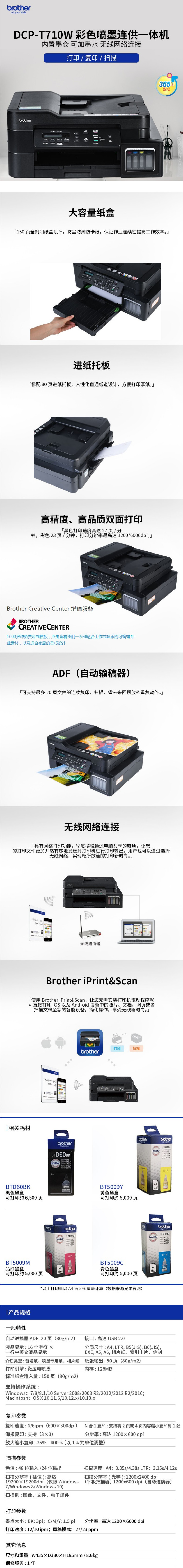 • 商品名稱:兄弟(Brother) DCP-T710W 彩色噴墨倉式一體機