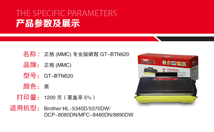 • 商品名稱:正格 GT-BTN620 專業(yè)版 黑色硒鼓 適用于 Brother HL-5340D/5370DW/DCP-8080DN/MFC-8480DN/8890DW 打印量1200頁(yè)