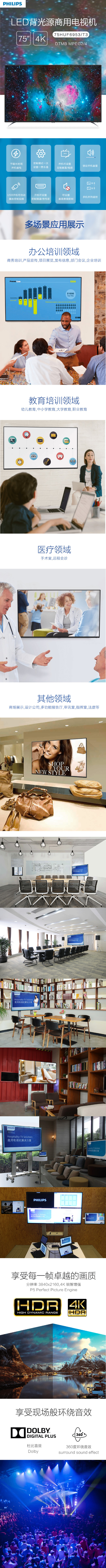 • 商品名稱:飛利浦(PHILIPS)75HUF6953/T3 75英寸 4K超高清 HDR 8G內(nèi)存 網(wǎng)絡(luò)智能商用液晶電視機