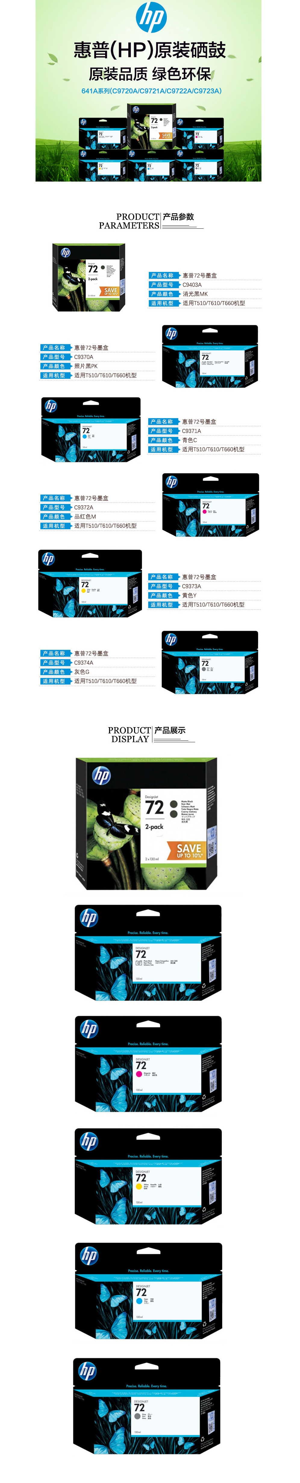 惠普(HP)C9403A 消光黑MK墨盒 72號(hào)系列 適用T510/ T610/ T770/ T790/ T795/ T1300PS機(jī)型