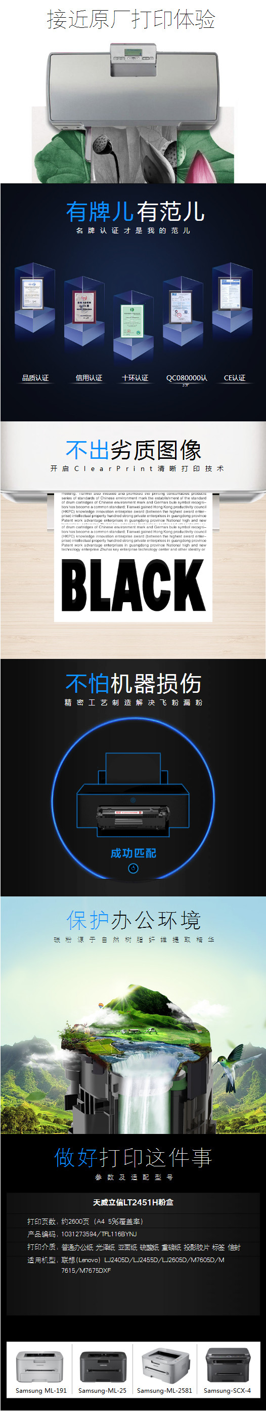 • 商品名稱:天威立信 服務版 LT2451H 粉盒 適用M7400 7450D 7450F 7655DHF 7615 7675 LJ2400 黑色 2600頁