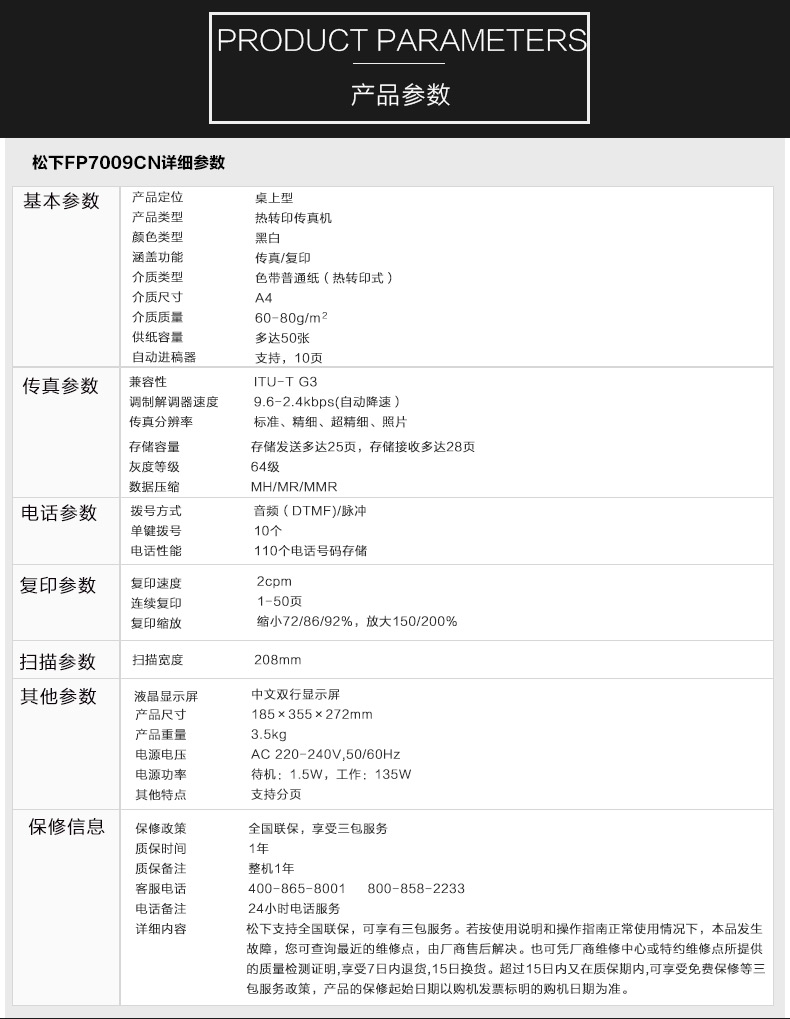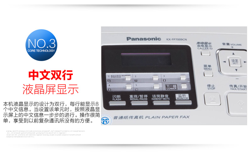 • 商品名稱:松下(Panasonic) 7009CN傳真機普通A4紙中文顯示 黑色