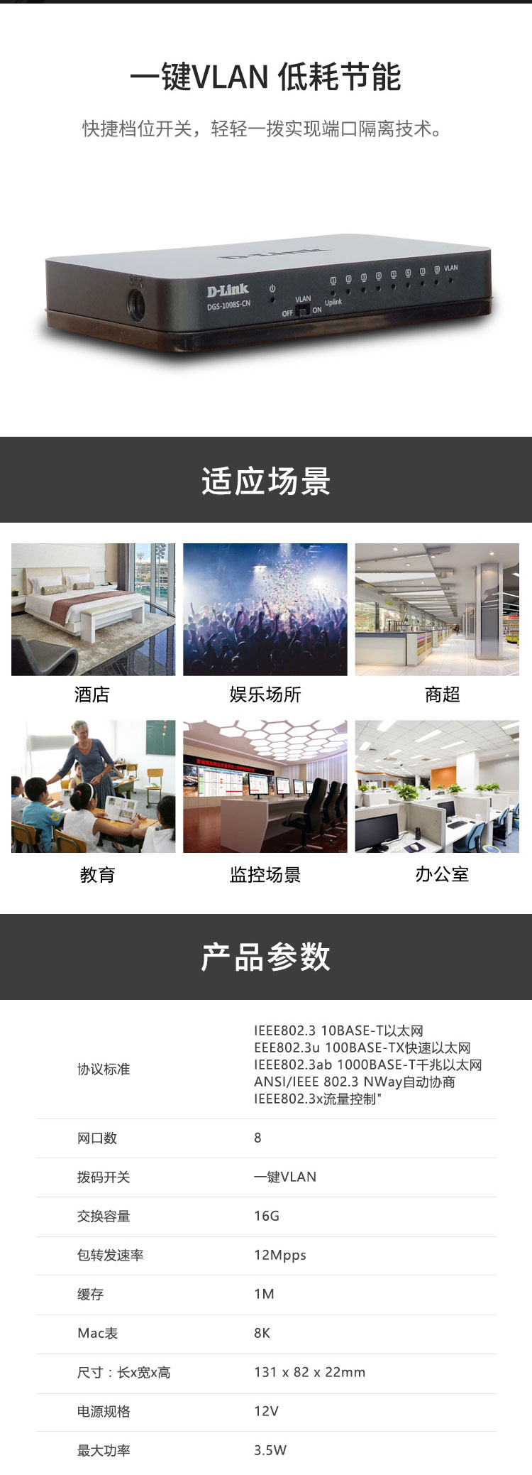 友訊(D-Link)dlink DGS-1008S-CN 千兆8口交換機 監(jiān)控交換機 SOHO交換機 桌面式交換機