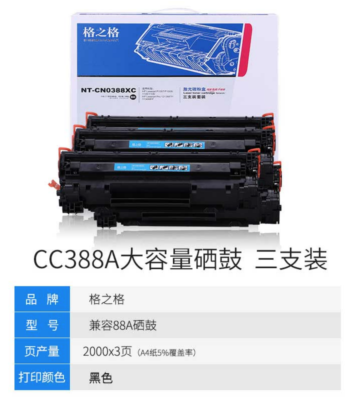 • 商品名稱:格之格 CC388A 硒鼓 大容量NT-CN0388XC 適用于惠普M1136 p1108 m1216nfh m126nwm打印機(jī) 一支裝