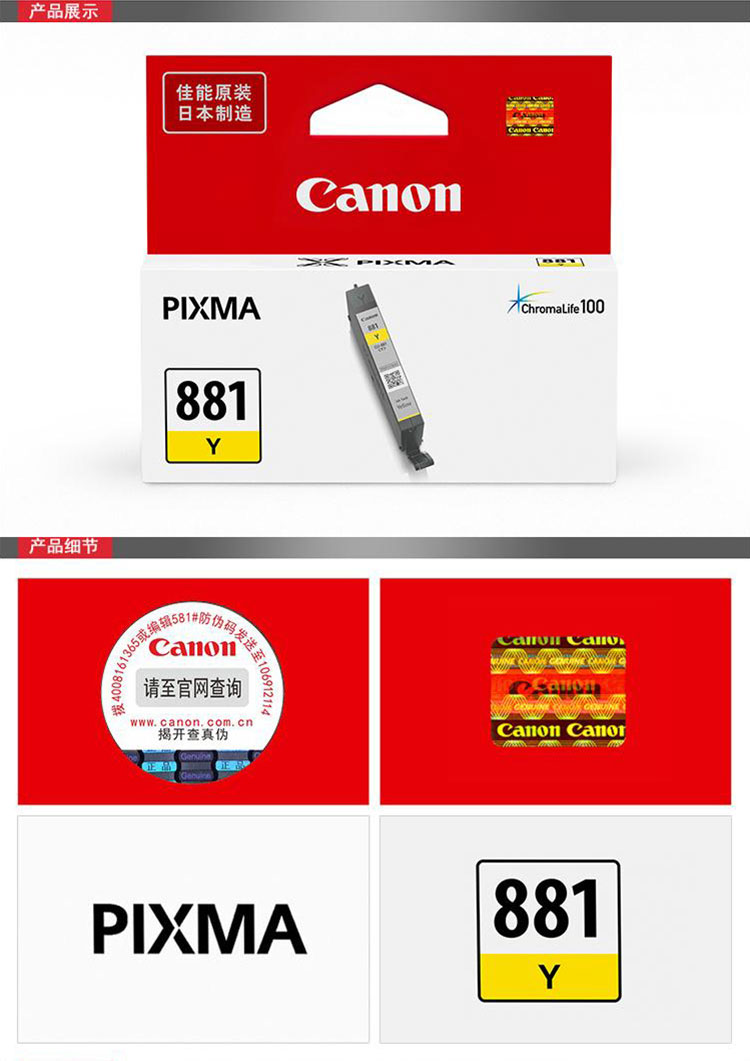 • 商品名稱:佳能(Canon) CLI-881 Y 黃色墨盒 適用TS9180、TS8180、TS6180、TR8580