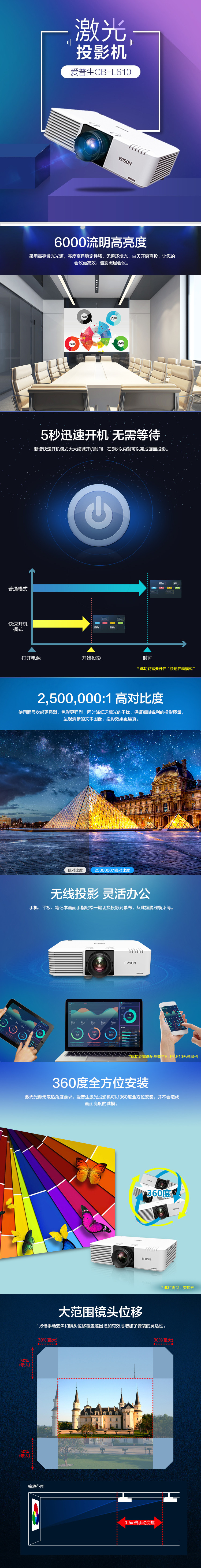 • 商品名稱:愛普生(EPSON)CB-L610 激光投影儀 6000流明 3LCD顯示技術 手動變焦 1024*768dpi 300英寸最大顯示 整機兩年保 燈泡半年保