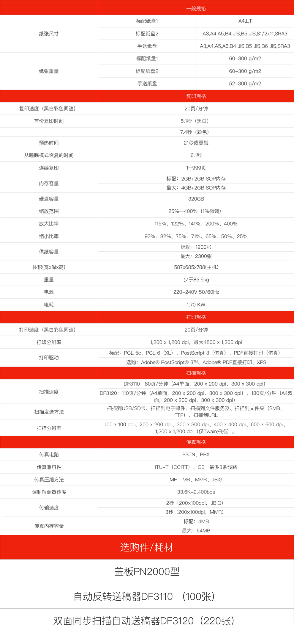 • A4復(fù)印速度(黑白):20頁/分鐘