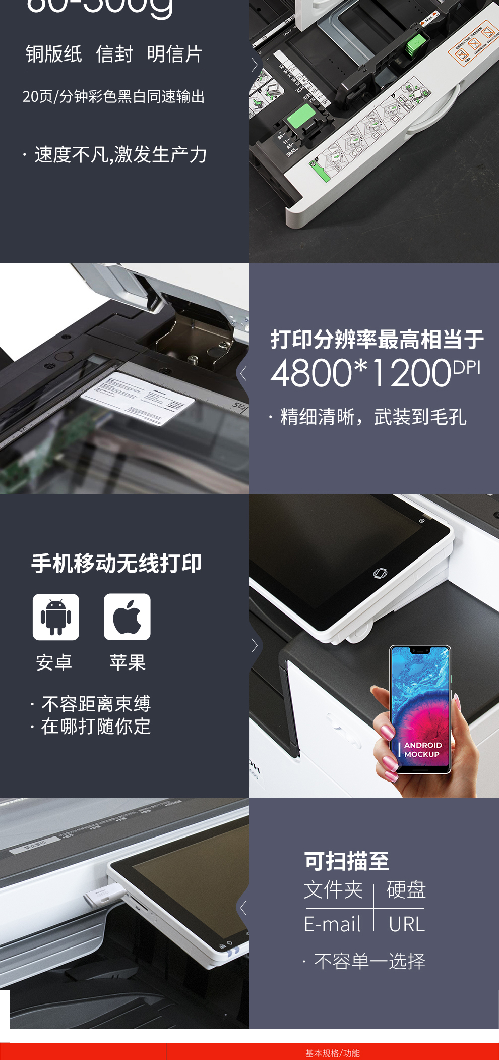• A4復(fù)印速度(彩色):20頁/分鐘