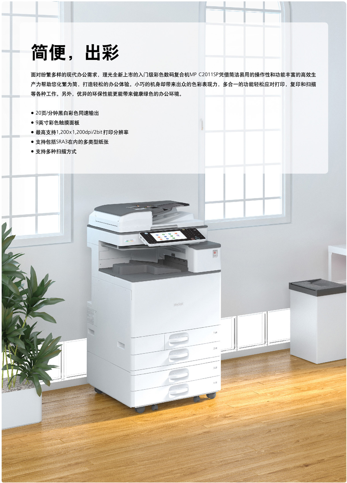 理光(Ricoh)A3彩色數(shù)碼復(fù)印機(jī)MP C2011SP(蓋板 雙紙盒 專用工作臺)
