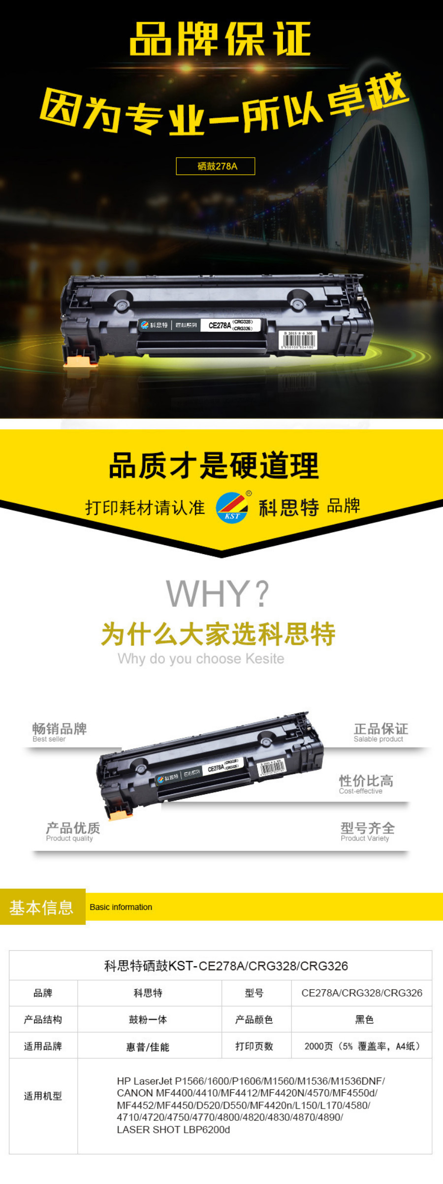 • 商品名稱:科思特 CE278A硒鼓 適用于惠普P1566 P1600 M1560 佳能CRG328 CRG326 匠心版