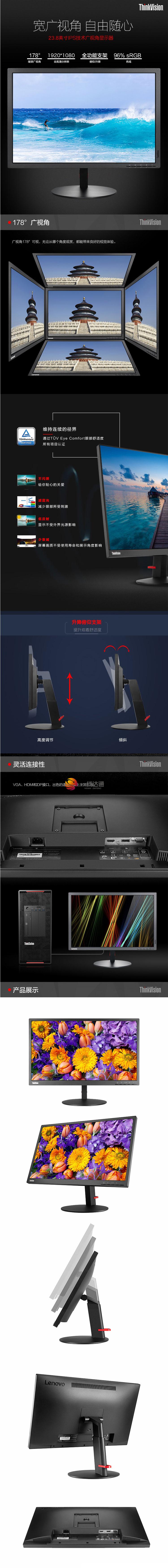 - 商品名稱:聯(lián)想(Lenovo)ThinkVision TE24-10 23.8英寸液晶顯示器 DP/HDMI/VGA接口 1920X1080分辨率 IPS面板 屏幕比例16:9 一年保修
