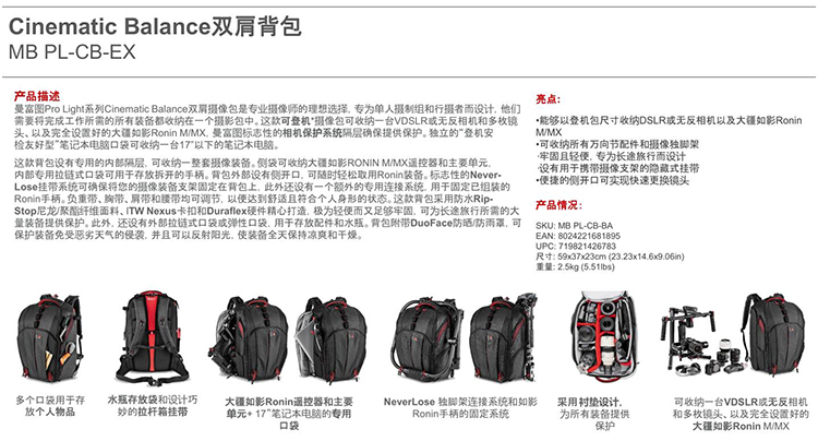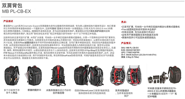 富圖(Manfrotto) MB PL-CB-EX 單反相機(jī)包雙肩包
