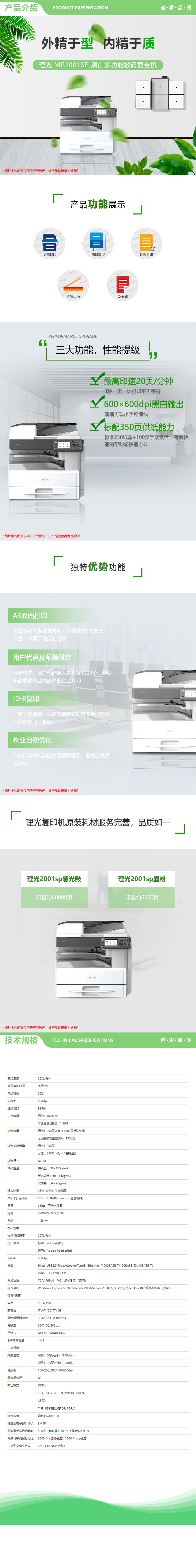 - 商品名稱:理光(Ricoh)MP 2001SP A3黑白數(shù)碼復合機(復印/打印/掃描)自動雙面 20頁/分鐘 有線網(wǎng)絡 600×600dpi 適用耗材:碳粉 MP2501(主機+蓋板+單紙盒)
