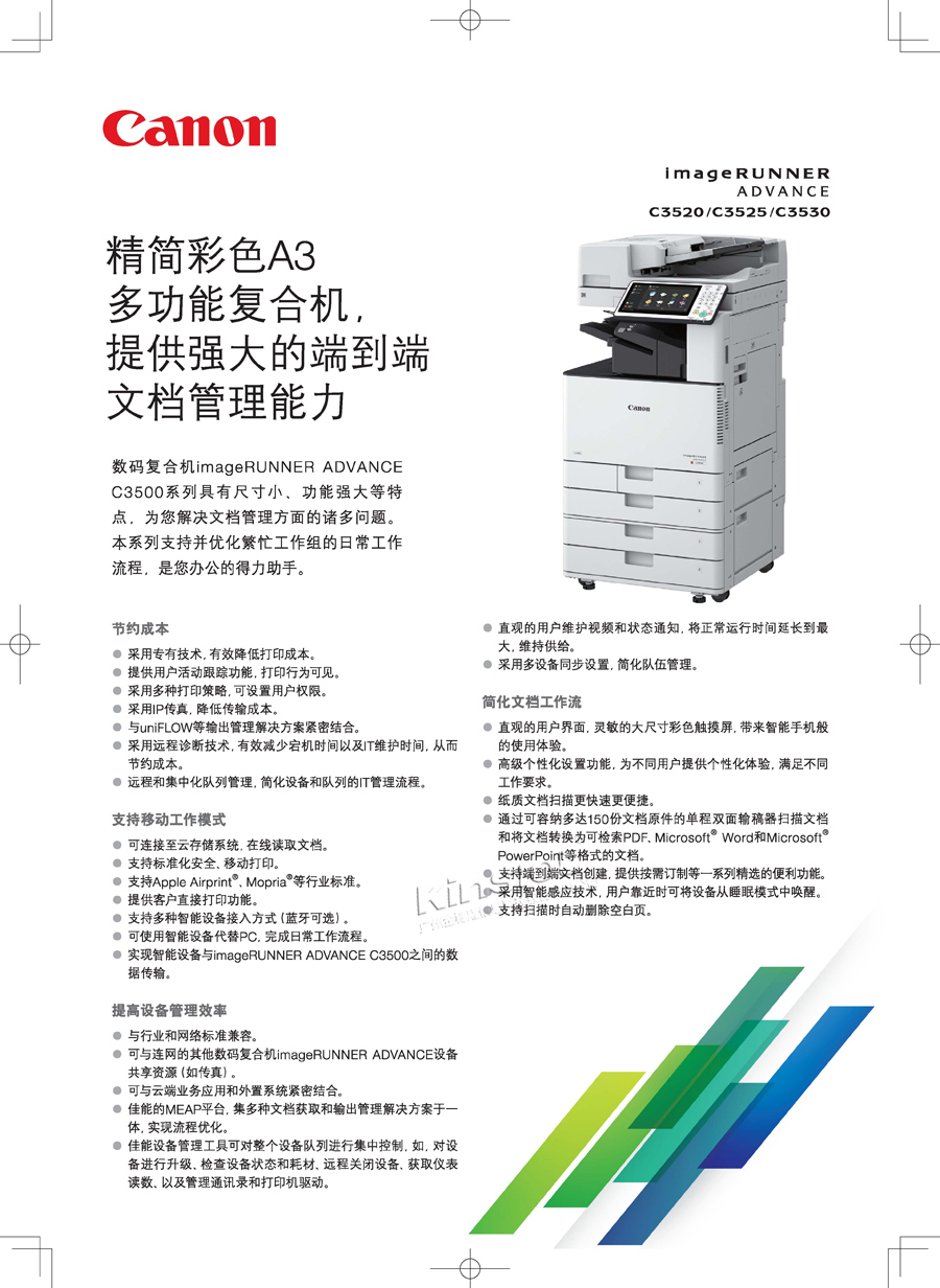 • 商品名稱:佳能(Canon)iRC3530AV1 A3彩色數碼復印機 主機+雙面自動送稿器+雙紙盒