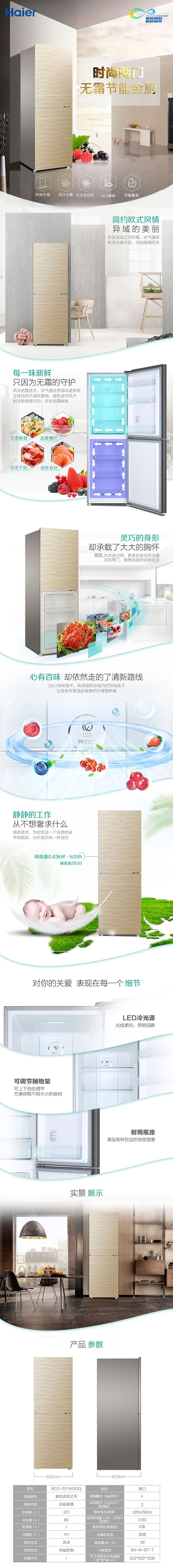 • 商品名稱:海爾(Haier)BCD-221WDGQ 221升雙門風冷無霜定頻家用冰箱