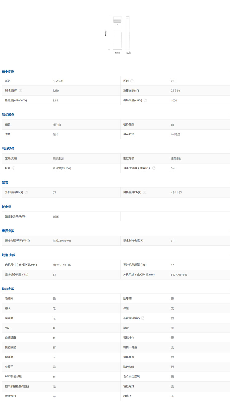 • 商品名稱:海爾/Haier 定頻單冷2P柜機KF-50LW/23XDA32 空調(diào) 2級能效