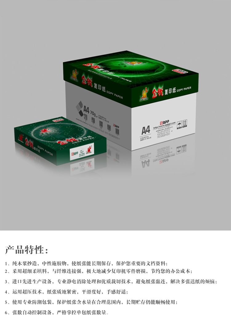 • 商品名稱:金銳 復(fù)印紙 A4/70G 500張/包 10包/箱