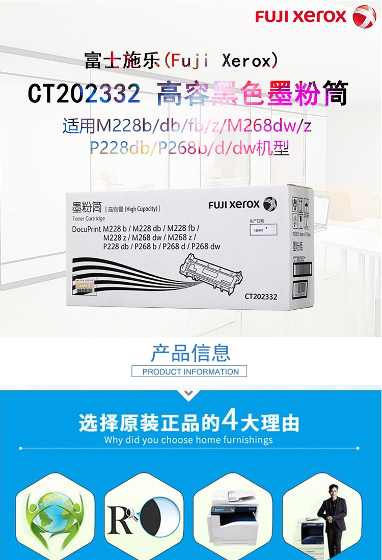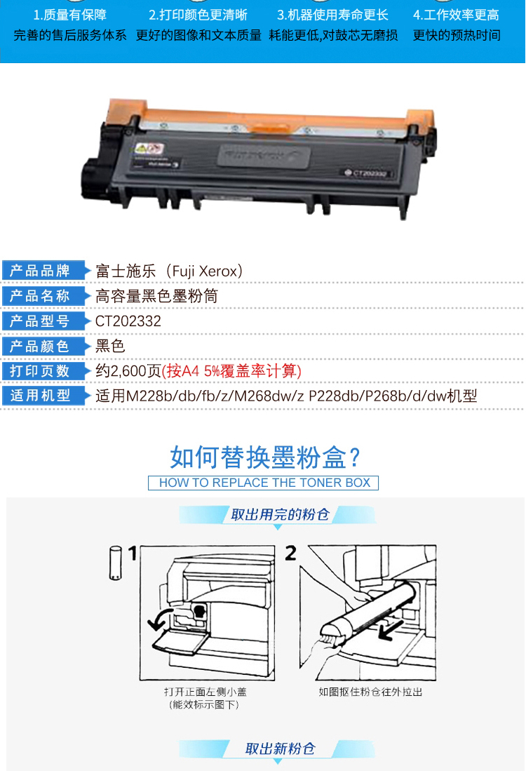 • 商品名稱:富士施樂(Fuji Xerox)粉盒/CT202332 黑色墨粉筒 2600頁打印量 適用于P/M228 P/M268系列 單只裝