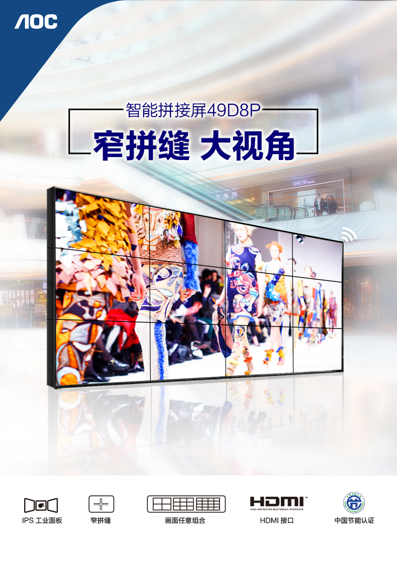• 商品名稱:AOC 49D8P顯示器 49英寸液晶拼接屏 超窄雙邊拼縫3.5mm 會議安防監(jiān)控拼接