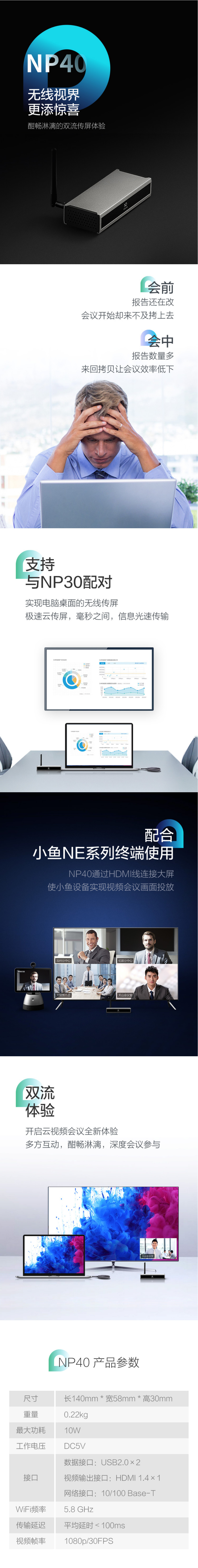 - 商品名稱:小魚(yú)易連 會(huì)議室無(wú)線傳屏基站視頻會(huì)議高清無(wú)線投屏器同屏器NP40