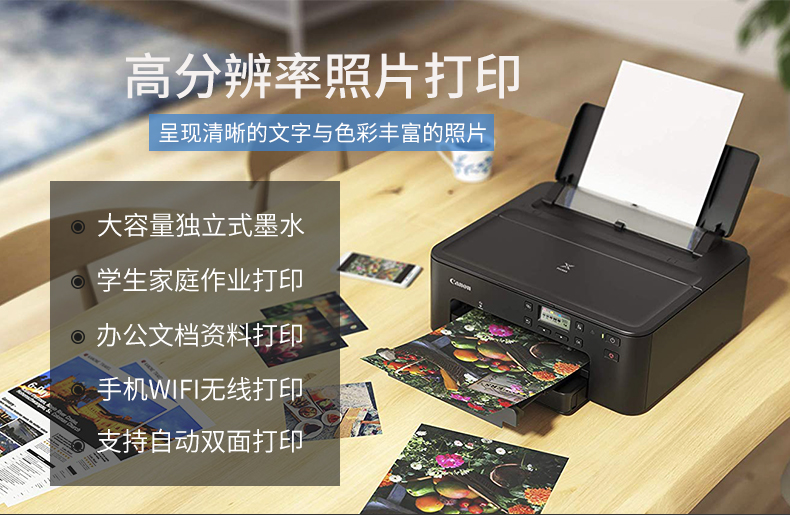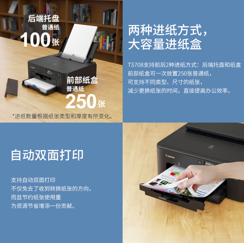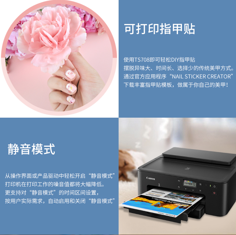 佳能(CANON)A4幅面彩色噴墨雙面打印機(jī)TS708 無線家用打印機(jī) 照片打印機(jī)家庭辦公 標(biāo)配