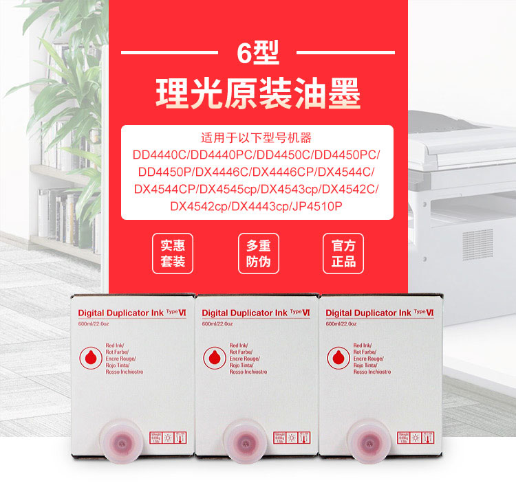 • 商品名稱(chēng):理光(Ricoh)6型(600cc/瓶*5支)紅油墨