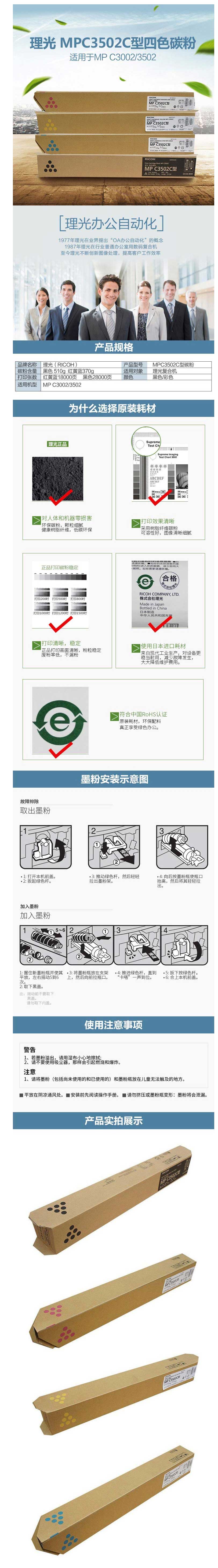 • 商品名稱:理光(Ricoh)黑色碳粉盒MPC3502C型 適用于MP C3002/3502