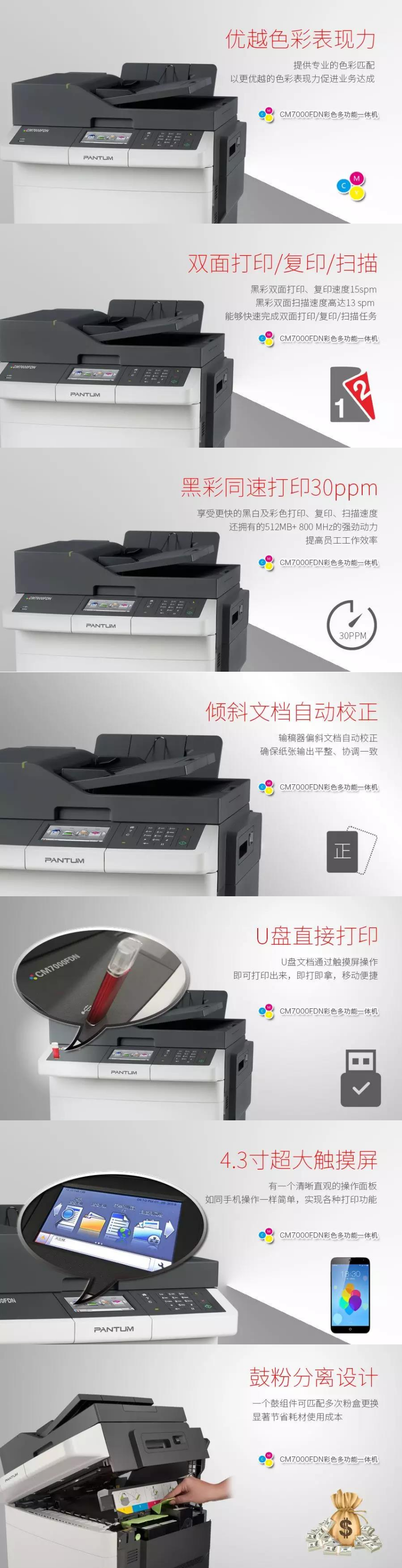 • 商品名稱:奔圖(PANTUM) CM7000FDN A4彩色激光多功能一體機(打印/復(fù)印/掃描)
