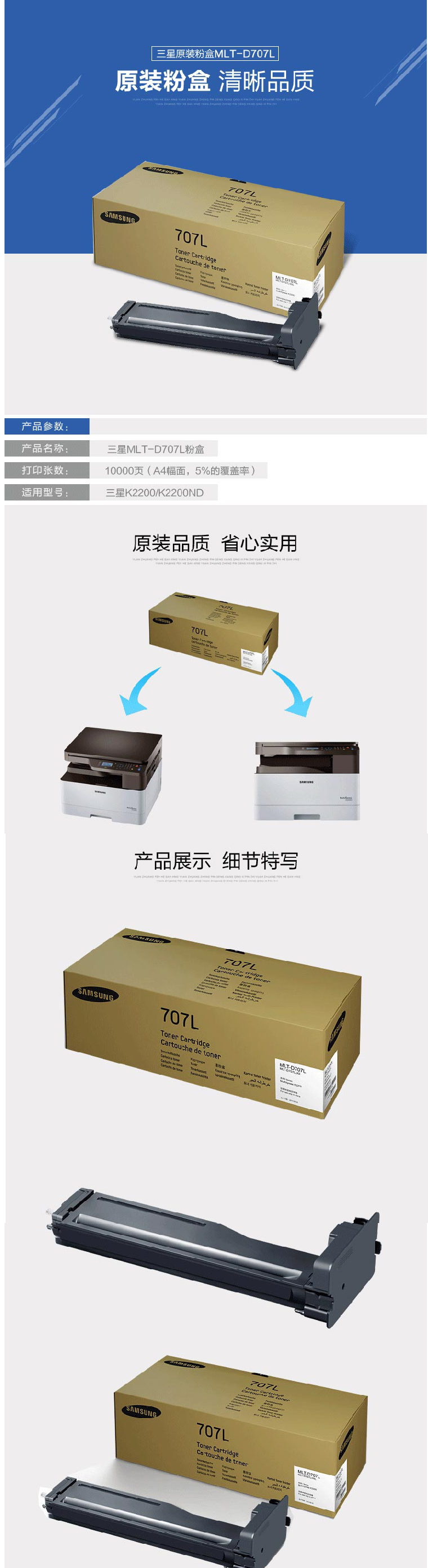 • 商品名稱:三星(SAMSUNG) MLT-D707L粉盒 適用于K2200/K2200ND 打印量10000頁