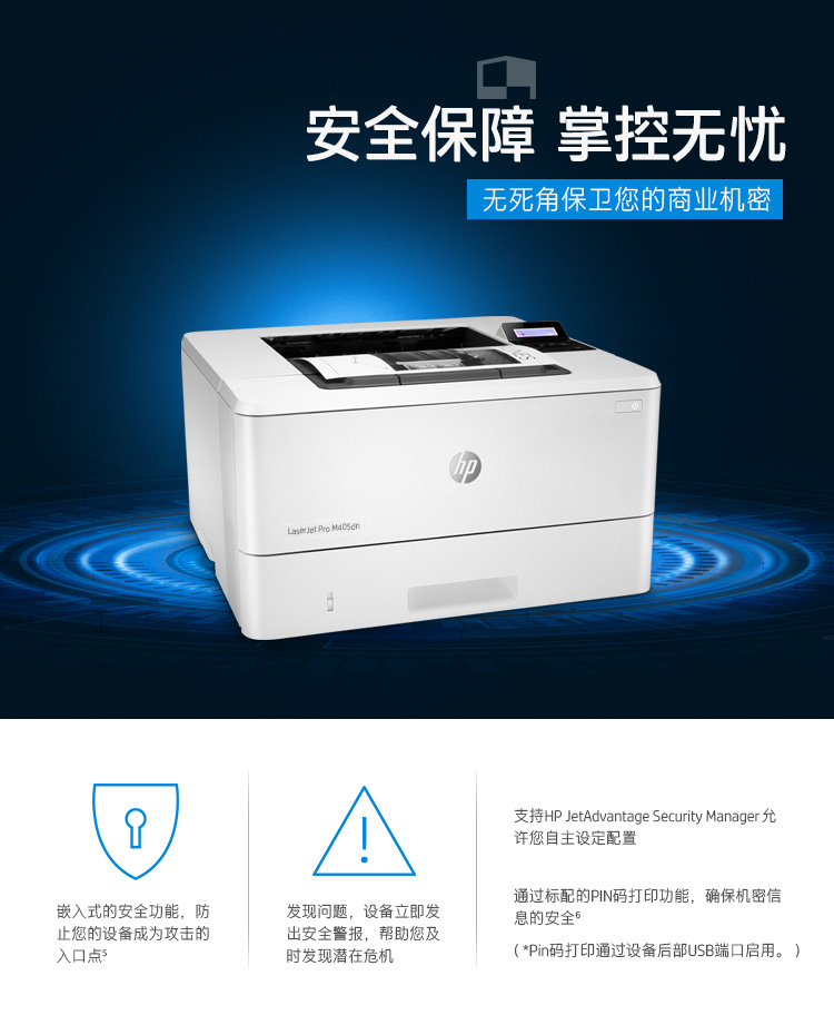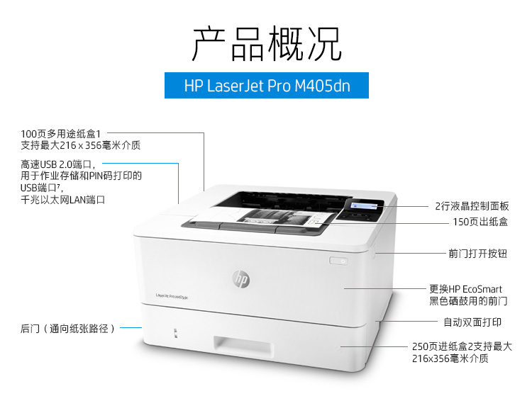 惠普(HP)LaserJet Pro M405dn 黑白激光打印機 A4幅面 標配網(wǎng)絡(luò)功能、自動雙面功能