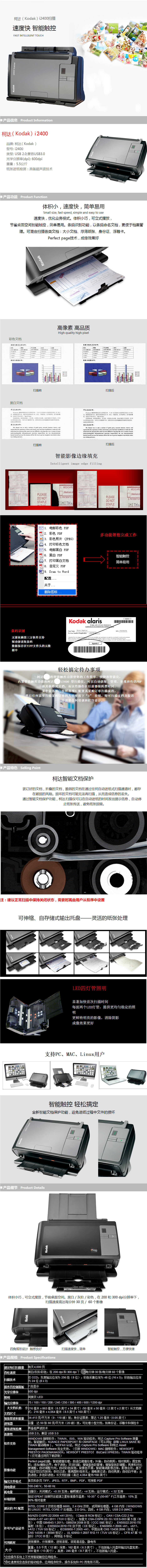 • 商品名稱:柯達(dá)(Kodak)i2400 掃描儀 A4幅面 色彩24位 分辨率600dpi 饋紙式 自動雙面 一年保修