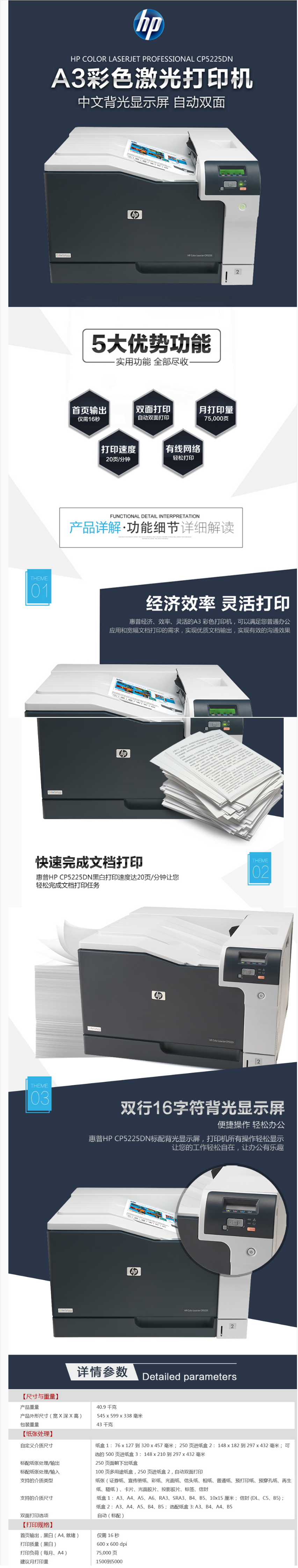 - 商品名稱:惠普(HP)Color LaserJet Pro CP5225dn A3彩色激光打印機(jī) A3幅面 兩年送修