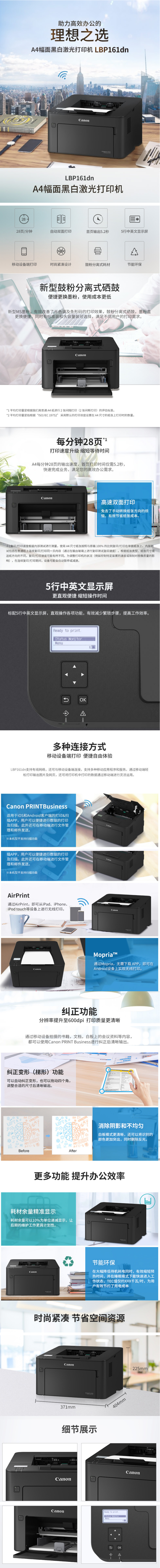 • 商品名稱:佳能(Canon)A4黑白激光打印機 imageCLASS LBP161dn 原廠1年送修