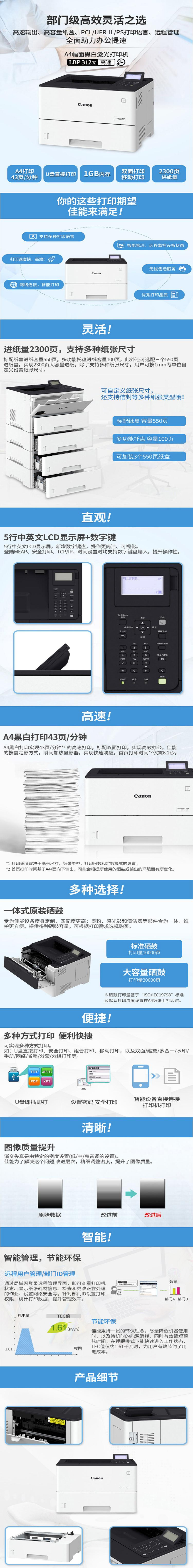 • 商品名稱:佳能(Canon)A4黑白激光打印機 imageCLASS LBP312x 原廠1年上門