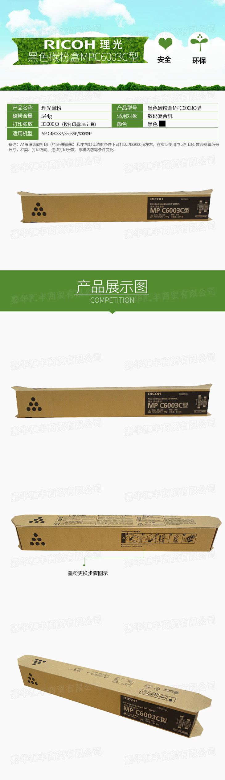 - 商品名稱:理光(Ricoh)黑色碳粉盒MPC6003C型 適用于MP C4503SP/5503SP/6003SP/C4504SP/C6004SP/C4504EXSP/C6004EXSP