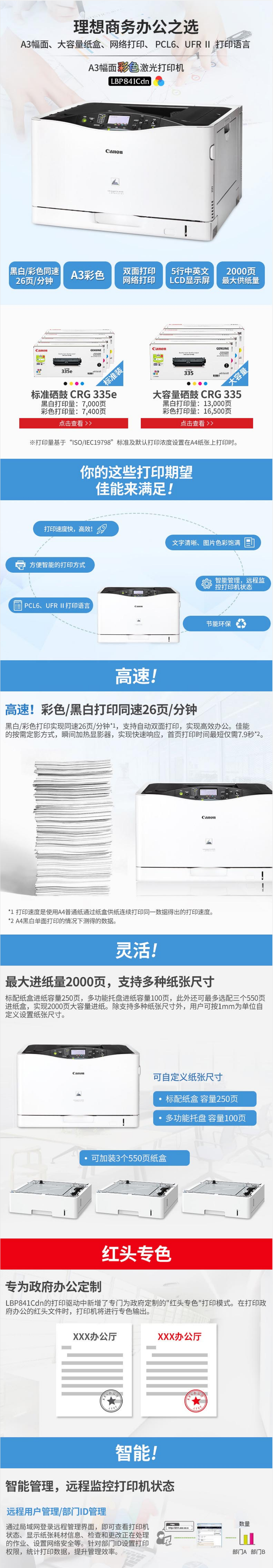• 商品名稱:佳能(Canon)A3彩色激光打印機(jī) imageCLASS LBP841Cdn 原廠1年上門