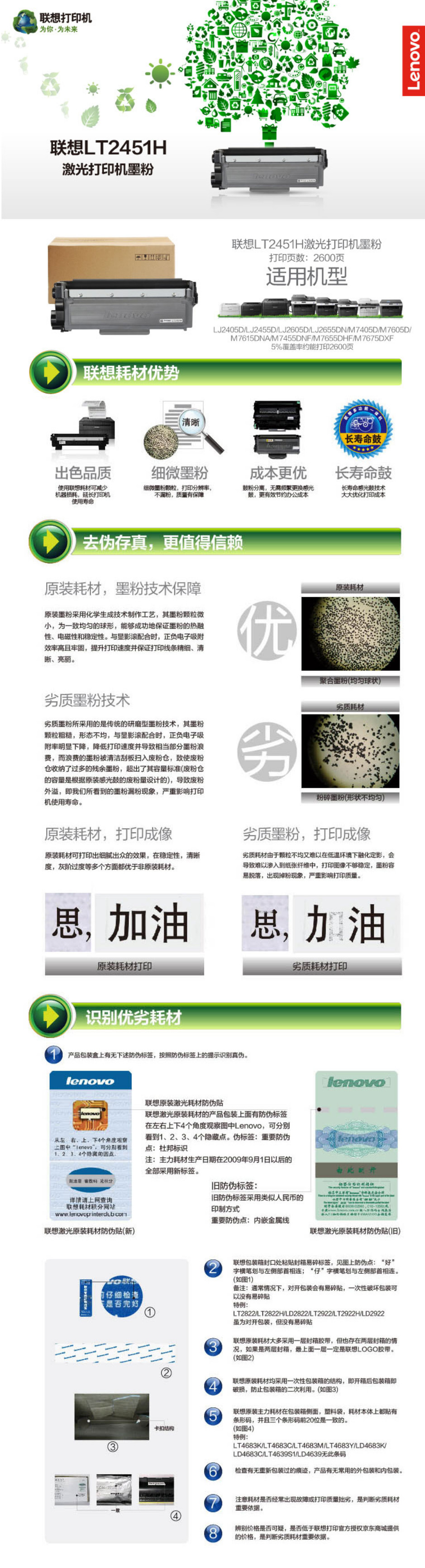 - 商品名稱:聯(lián)想(Lenovo)LT2451H 墨粉 適用于LJ2605D/LJ2655DN/M7605D/M7615DNA/M7455DNF/7655DHF打印機(jī) 2600頁